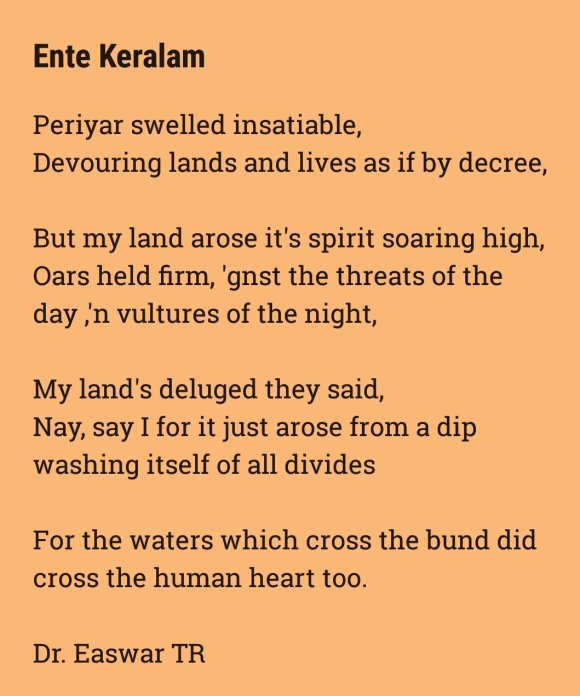 These lines were penned before the flood, on the day of heavy rains in Palakkad that preceded the flood. Even just seeing the rains it was amply clear that something was grossly wrong. These rains were not normal. I knew it as going to be trouble. The lines was also partly meditative, as I prayed for rain to ease.